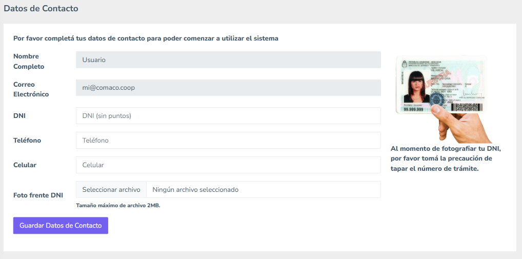 4.- Completá tus datos. Es importante que cargues la foto de tu DNI para verificar tu identidad.